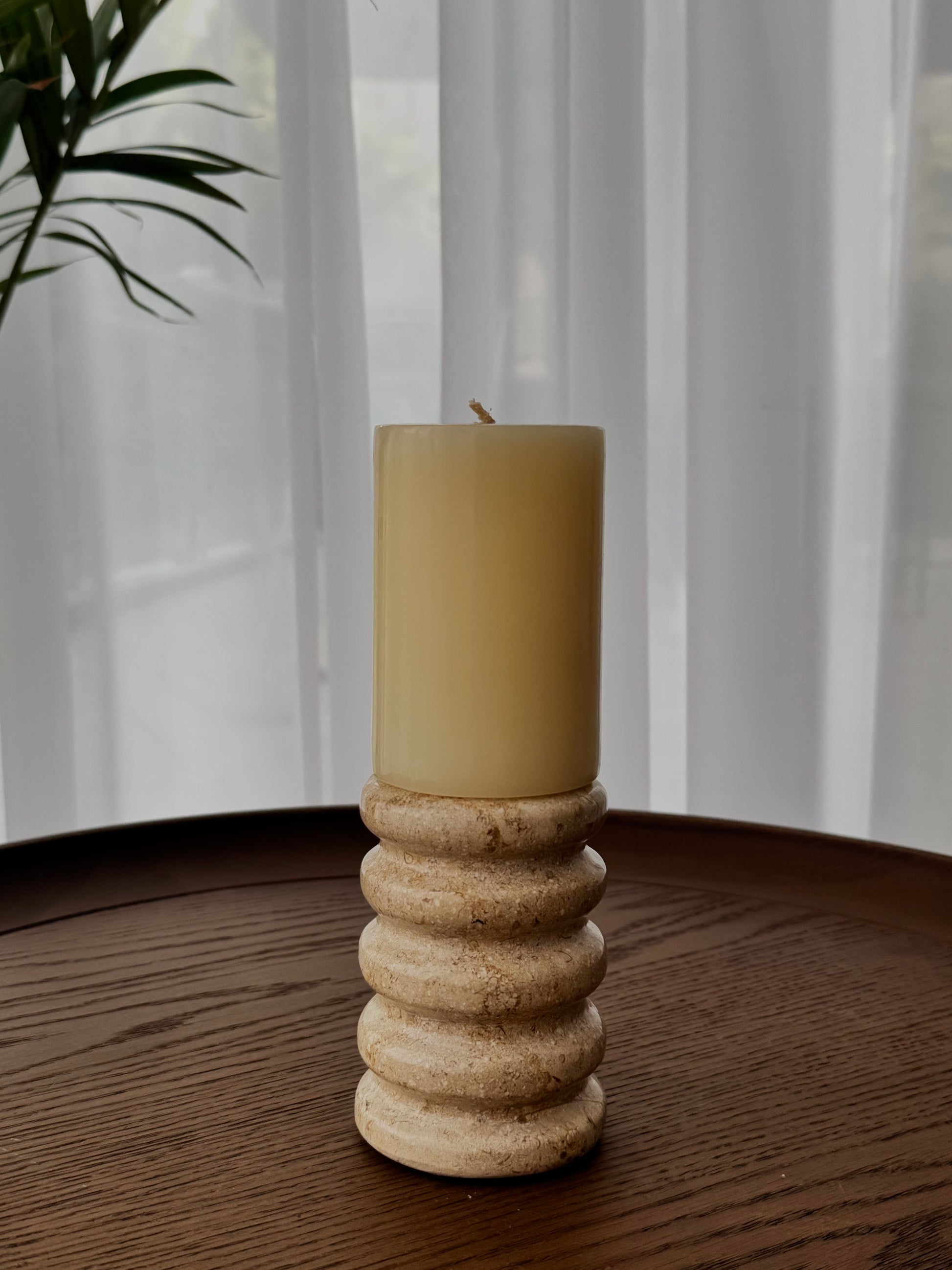 A circle of elegance carved in marble. The Halo Candle Holder features a refined ring silhouette that frames the candle in sculptural simplicity, casting a soft, architectural glow.