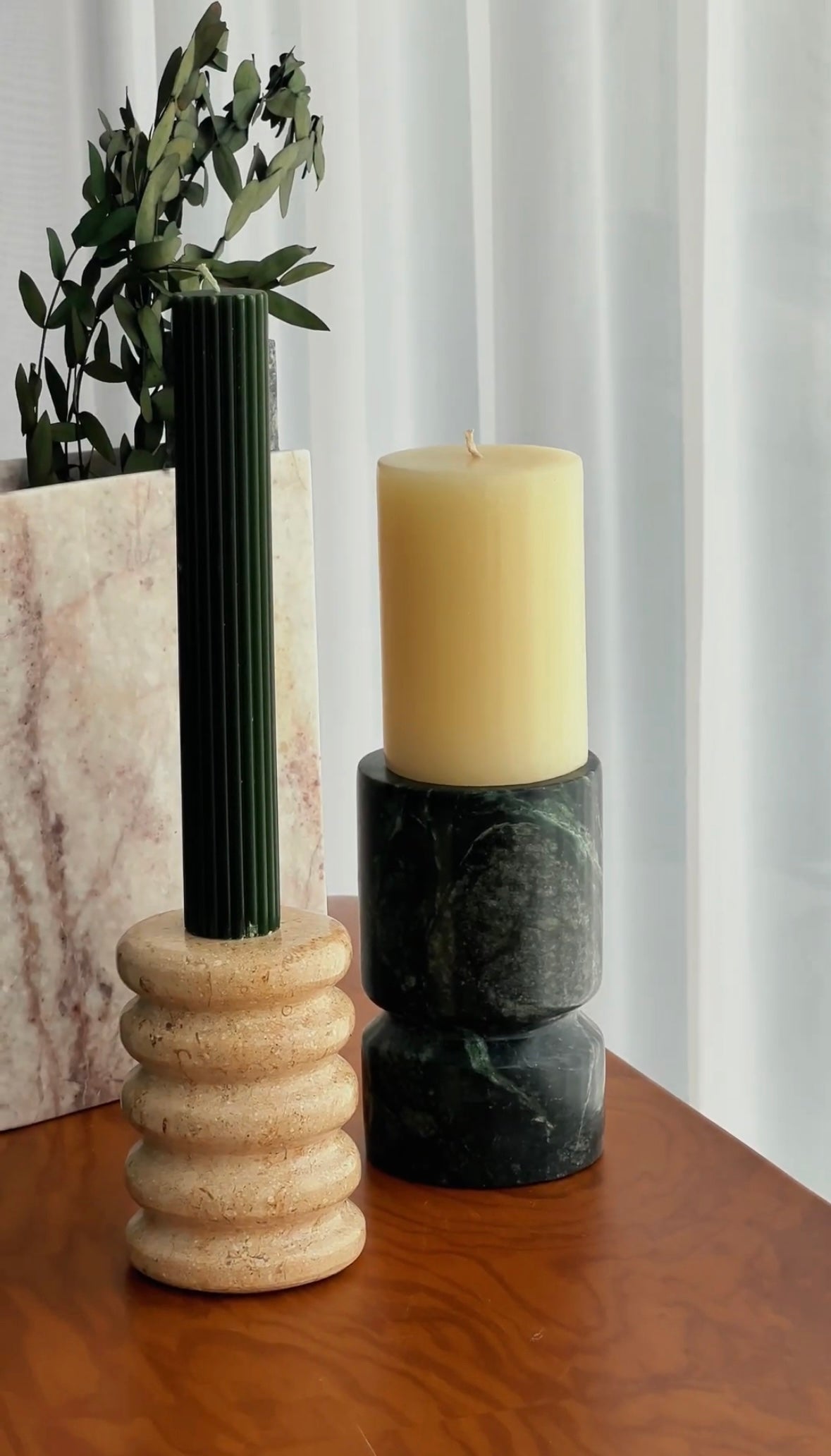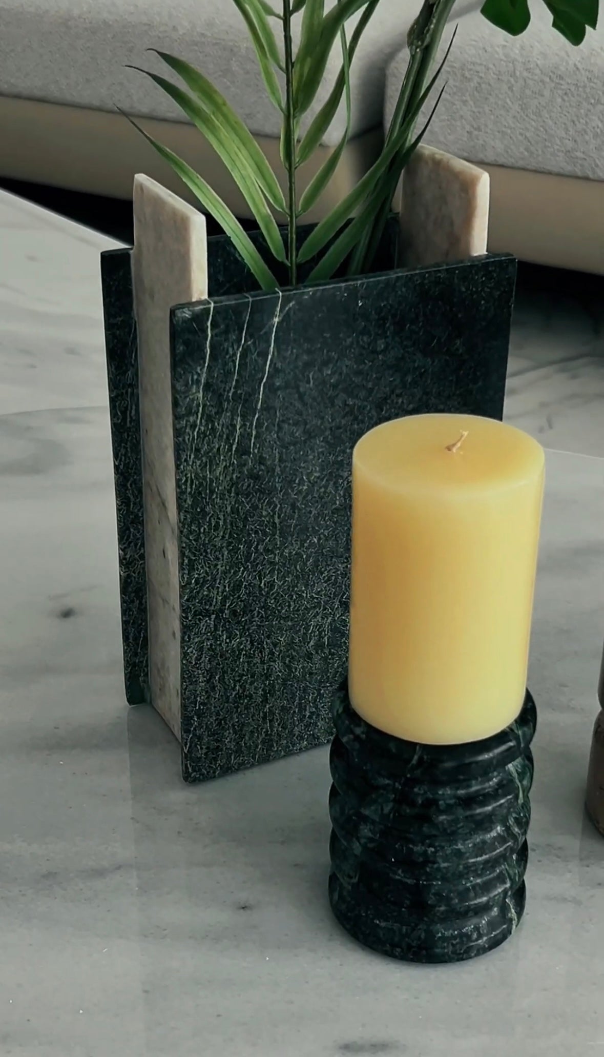 Available in deep Verde Green or warm Beige, each piece is one of a kind, showcasing the natural beauty and veining of marble.