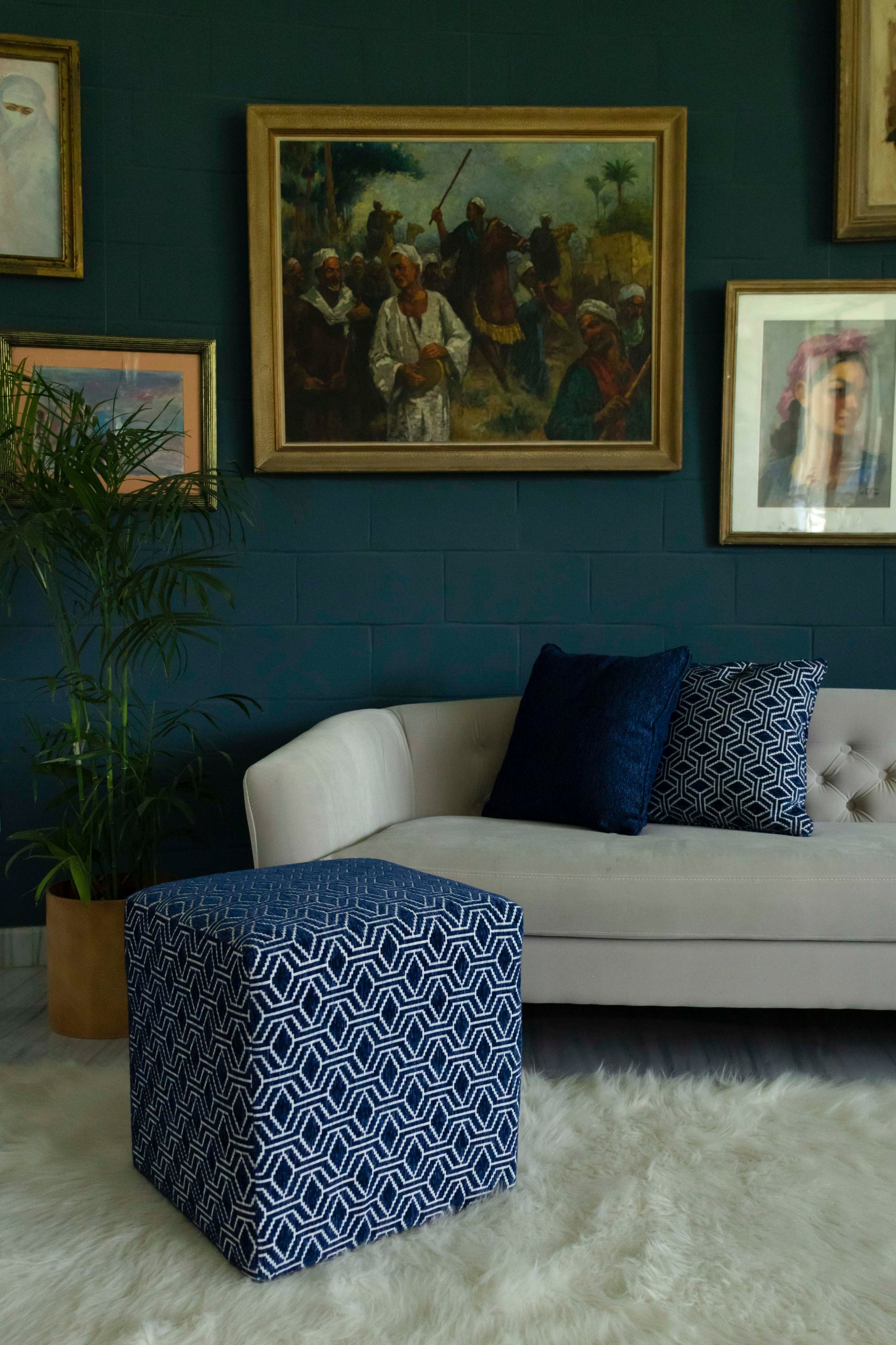 Introduce an element of contemporary elegance to your living space with the Midnight Mosaic Pouf.